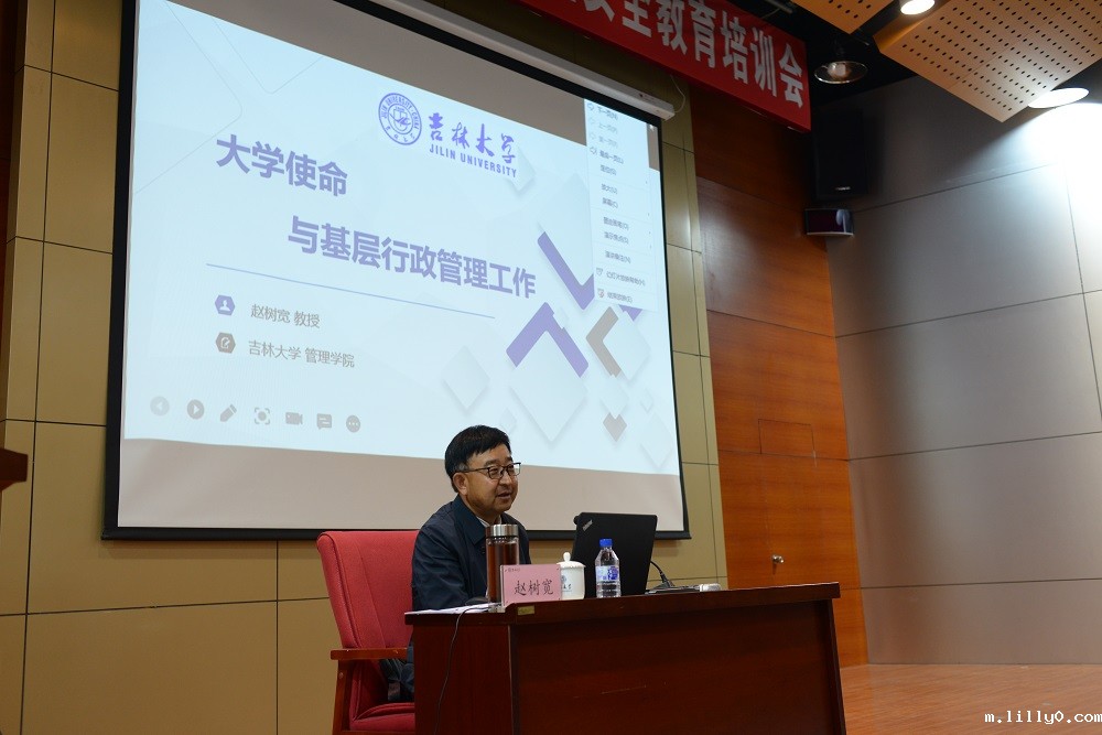 管理学院赵树宽教授以《大学使命与基层行政管理工作》为题,从大学的产生、大学的使命、践行大学使命的路径引入,介绍了大学行政管理的概念、层次和主要职能等内容。赵树宽教授结合多年的管理工作经验,从管理理论研究者和管理实践执行者两个角度对如何做好基层行政管理工作、做好基层行政管理工作应具备的素质和应坚持的原则等内容进行了细致的讲解。